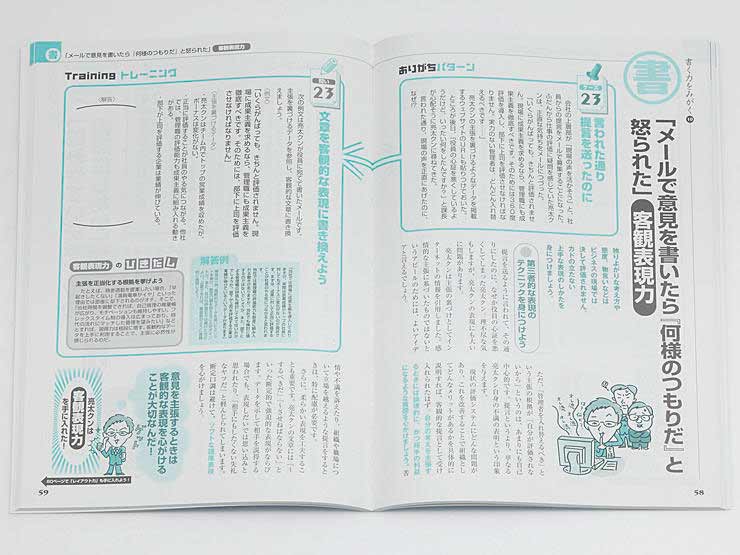 若年層の学習スタイルを意識した教材形態となっており、読書が苦手な方でも最後まで学んでいただけます。Q&A方式、見開き2ページで完結する紙面デザインです。気軽に楽しみながら学習に取り組めるよう十分に配慮しています。