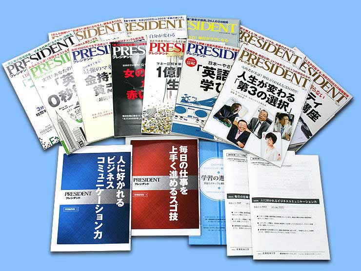 ※『プレジデント』本誌については、別途、(株)プレジデント社から直接、お届けします。初回教材のお届け後、到着まで2週間程度かかる場合がありますので、あらかじめご了承ください。