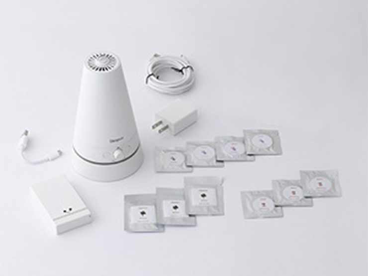 • 「香り」は、エッセンシャルオイルを閉じ込めたパルプ製のアロマシート計10枚を個別にパッケージ。未開封で3年程度の保存が可能。