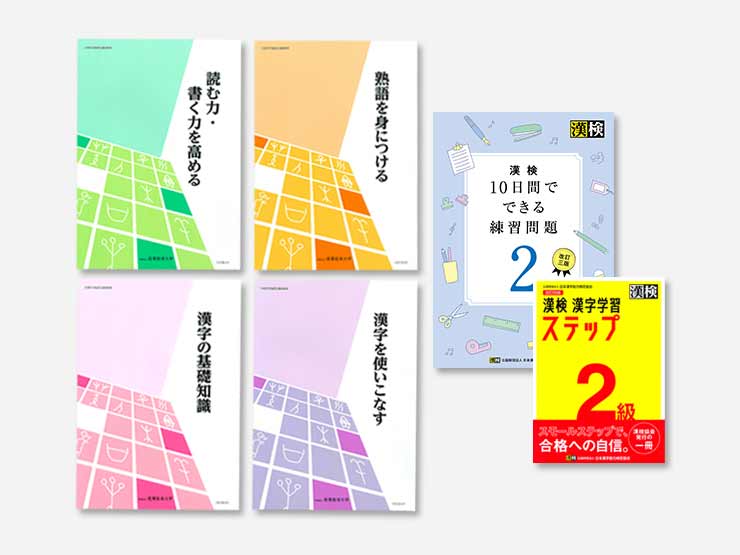 ※別冊「漢検 漢字学習ステップ2級」「漢検 10日間でできる練習問題2級」は(公財)日本漢字能力検定協会発行の書籍を使用しています。※カリキュラム、教材構成等は変更になる場合があります。分冊配本となる場合があります。