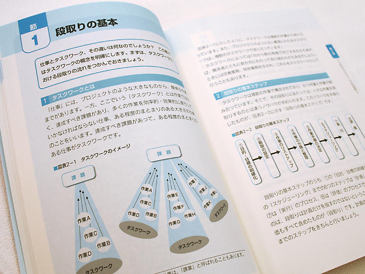 1.テキストでは、「段取りとは何か」といった概念的なことから、優先順位のつけ方、タイムテーブルの使い方まで、すぐに役立つスキルが学べます。