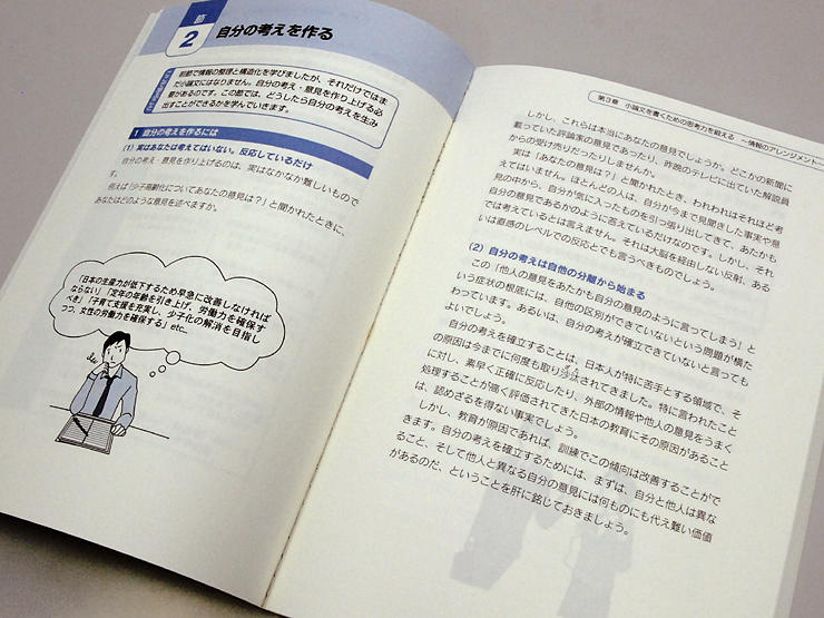 - 文章を批判的に読む(問題点、矛盾点を発見する)、情報の構造化(構造を抽出し文章化・視覚化する)、論理セルの構築(文章の流れを作る)