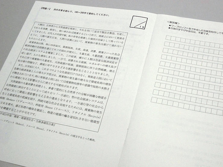 実践編では実際にある状況を設定し、小論文を作成します。