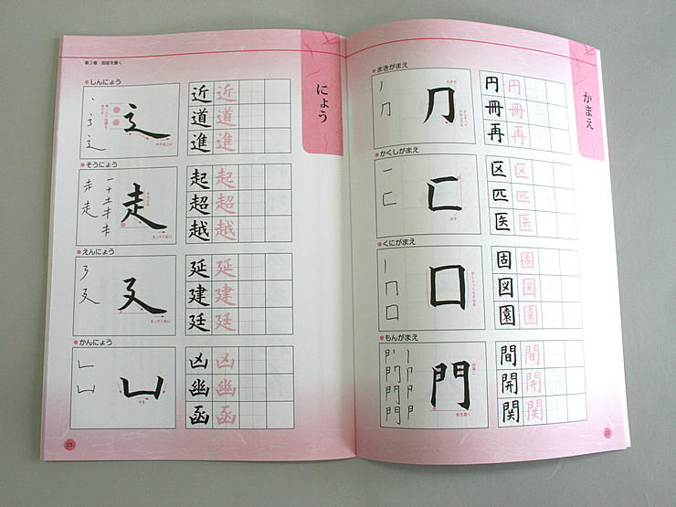 テキストは開きやすい中綴じの書き込み式なので、お手本の文字を直接なぞって練習できます。補助教材の「水書き練習ペン/用紙」と「筆ペン2本」で簡単に美文字の練習ができ、とても便利です。