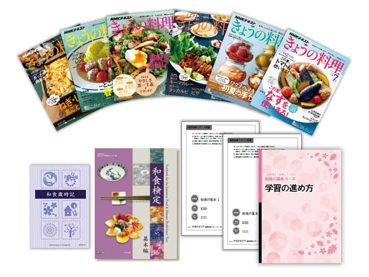 ※教材のうち、『きょうの料理』はNHK出版から送付いたします。NHKテレビテキストは、テレビ番組の放映に間に合うスケジュールで初回発送を開始いたしますので、受講登録の時期により、他の教材セットお届けの翌月になる場合がありますがご了承ください。