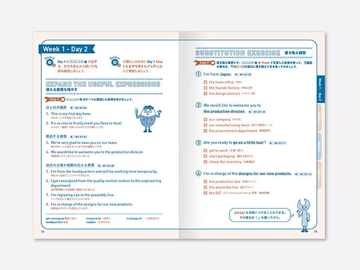 ものづくりの現場にターゲットを絞り、シーン別に英会話の基本とよく使われる表現を実践的に学習します。外国人スタッフと円滑なコミュニケーションを取るために必要なスピーキング力を養います。
