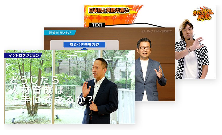 学びのきっかけとして「SANNO e ACADEMY」を受講する、より深く学習したい場合には通信研修を受講するなど、様々な学習手段と組み合わせることで、より幅広い学びを可能とします。