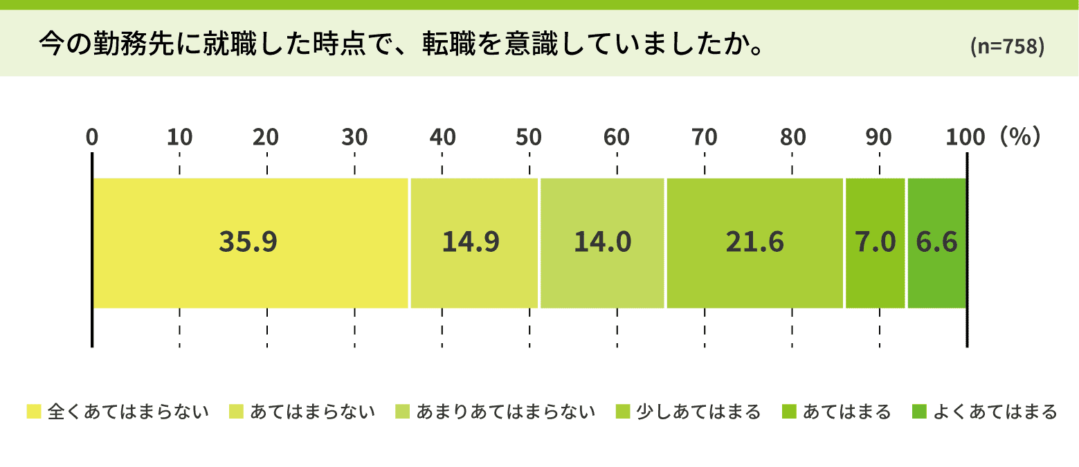 35.2%は入社時点で次の転職を意識していることからも(表3)、1社に勤め上げるという就業観自体が薄れてきていると言えるのではないでしょうか。