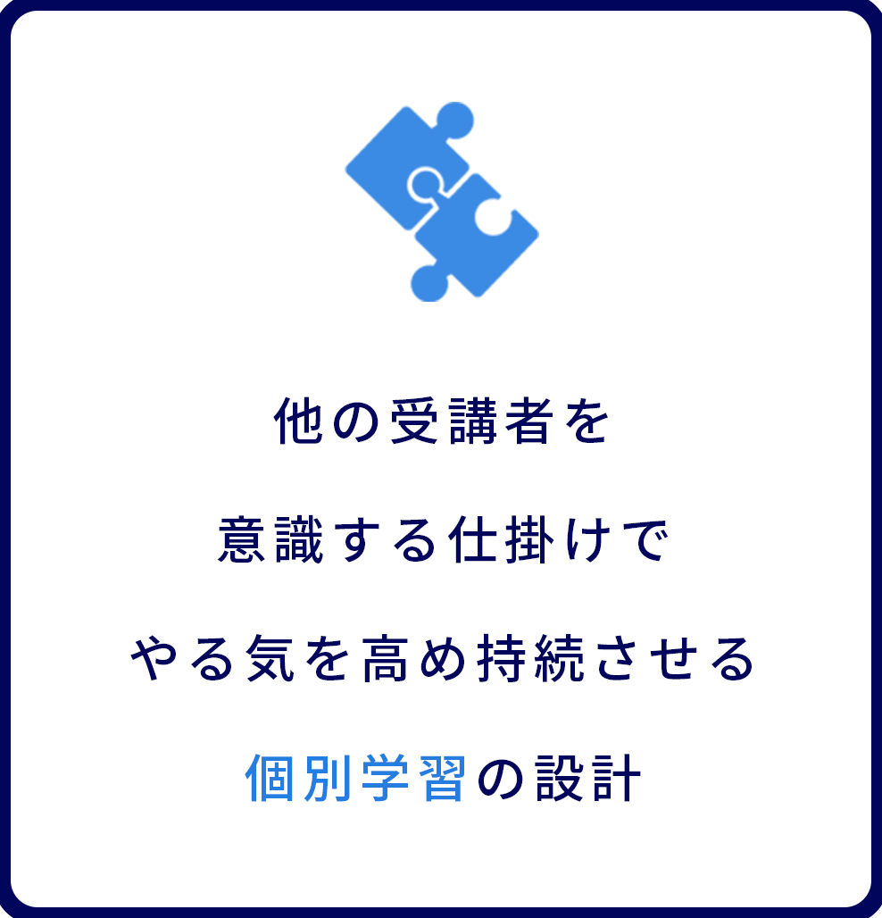 個別学習で一通り学んだうえで頭を整理して集まるため、集合学習の場で受講者の質問や相互コメントの質が高まります。