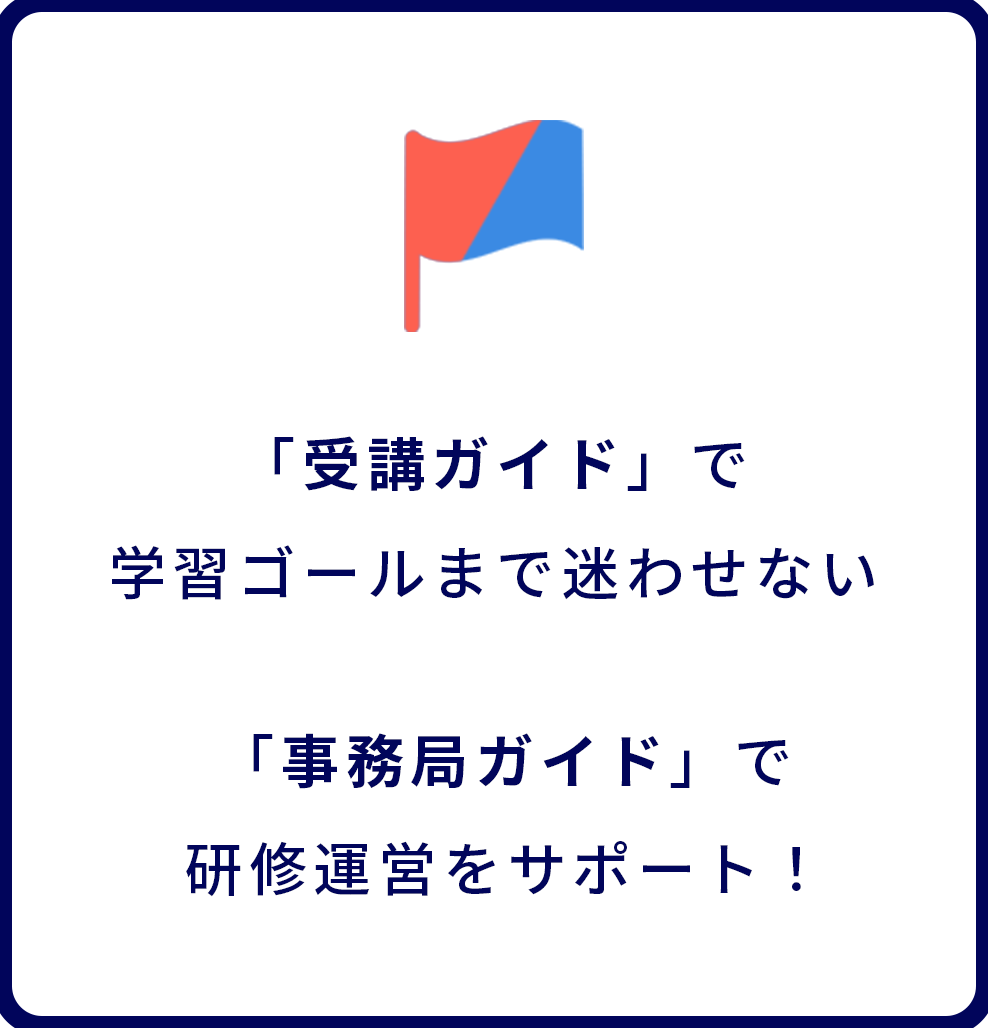 • 実際の運営にあたっては、受講者へのリマインドのタイミングや案内する内容のひな形等についてご案内している「事務局用ガイドブック」を用意しています。